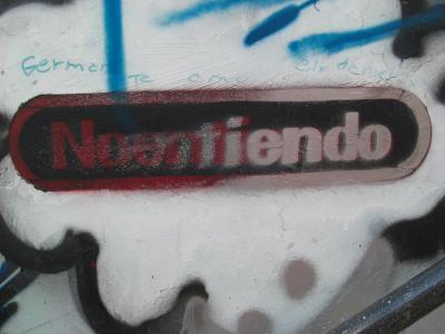 mein spanisch ist immer noch grotte. naja, sprechen kann ich ein bisschen, aber verstehen ist nach wie vor echt schwer. das klappt nur, wenn die anderen leute auch wollen, dass man sie versteht. daher war ich auch von diesem leicht abgeaenderten nintendo logo begeistert. heisst soviel wie: ich verstehe nicht - hehe!