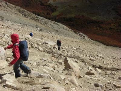 ... ja, der abstieg ging dann recht schnell. ca. 2 stunden. das lang zum einen daran, dass die bergfuehrer feierabend haben wollten, und dass man grosse teile der strecke auf dem hintern zuruecklegen konnte.