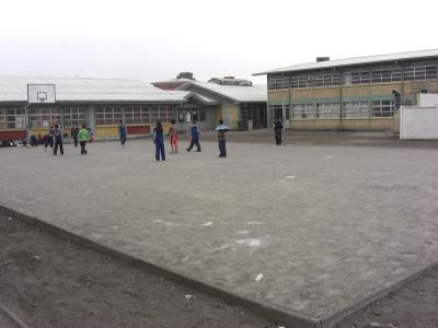 und der wunderschoene schulhof. es findet grad die fussball-ag statt.