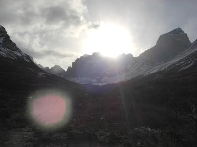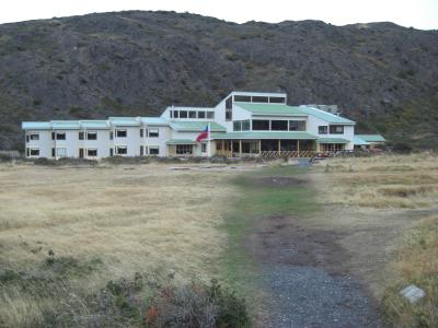 der erste tage wurde nur damit verbracht ueberhaupt erstmal in den park hineinzukommen, also nicht sonderlich spektakulaer (unterhalb des lago pehoe bis zum sternchen paine grande). das wetter ist in diesem park allerdings sehr unbestaendig, daher hat es ca 30min. vor ankunft am campinglager angefangen aus eimern zu regnen. als wir dann endlich da waren, waren wir sehr froh, dass neben dem zeltplatz auch eine art hotel war. das auch im winter geoeffnet hat, allerdings nicht uebermaessig stark frequentiert war. es erinnerte eher an den film shining, was auch als durchaus unheimlich empfunden werden kann. aber ich war froh nicht ins zelt zu muessen.