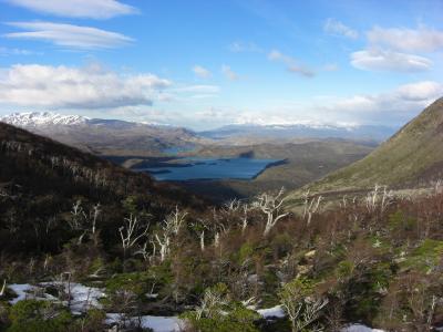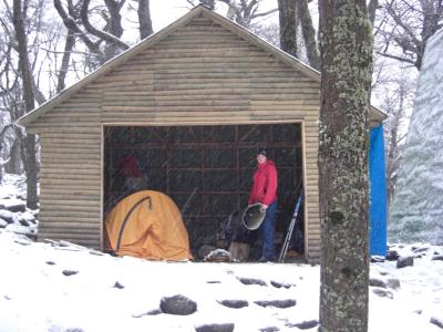 am vierten tag ging es dann weiter richtung osten. zum campamento las torres (nicht auf der karte, aber ueberhalb vom refugio cp chileno). allerding hat das wetter wieder einmal verrueckt gespielt. diesmal gab es aber keinen regen sondern schnee. und zwar ziemlich viel. und leider gab es auch kein refugio oder hotel, sondern es musste im zelt geschlafen werden. na toll!!!