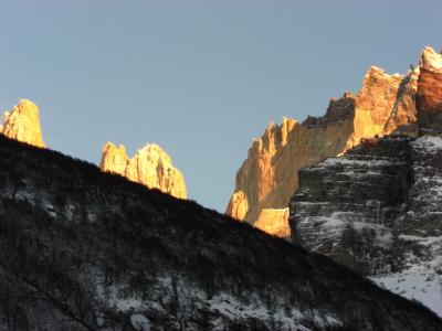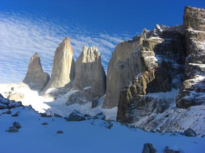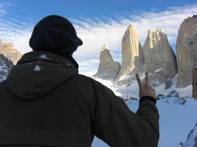 allerdings auch schnee. im tal nur zu den knoecheln, aber man wollte ja zur hauptattraktion des parks. naemlich den torres. dafuer musste mann nochmal nen berg hochklettern. oben ging der schnee dann knapp ueber die huefte (was auf den bildern leider nicht zu sehen ist) aber die anstrengung hat sich auf jeden fall gelohnt: